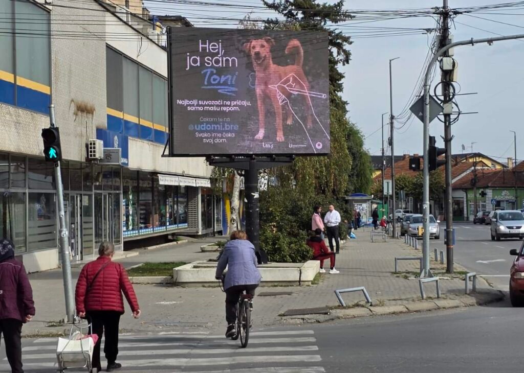 Prošlog oktobra, a zahvaljujući našoj digitalnoj platformi DION, pokrenuli smo digitalnu out-of-home CSR kampanju koja je imala za cilj da podigne svest o važnosti udomljavanja napuštenih životinja. Kampanja je pokrenuta u saradnji sa partnerima Led Mreža Srbije i ljudima okupljenim oko Udomi.Bre, uz snažnu poruku: „Svako ime čeka svoj dom“.